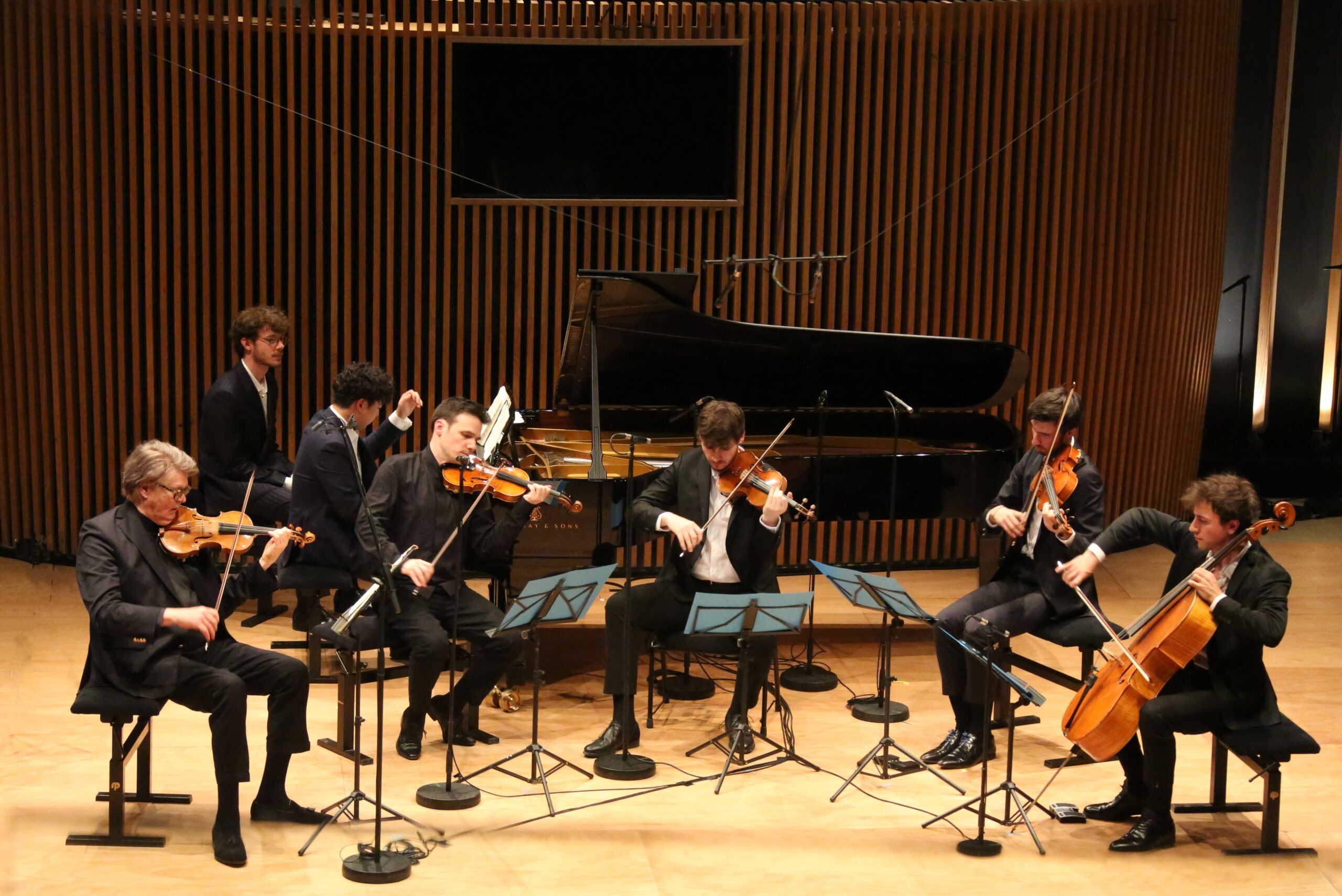 Après une coupe de champagne dans la verdure, l’heure est venue du Concert pour piano, violon et quatuor à cordes en ré majeur de Chausson. Les six musiciens entrent en scène, avec en premier chef, pour cette œuvre écrite en 1890 pour Eugène Ysaÿe, le violoniste Augustin Dumay. C’est Kojiro Okada au piano qui lance le premier mouvement «décidé» où l’on entend peut-être un peu trop faiblement le violon. Le quatuor formé par Omer Bouchez, Vissily Chmykov, Paul Zientara et Maxime Quennesson brille dans la Sicilienne où le violon leur répond avec cette douceur si singulière que l’on trouve dans cette œuvre marquante de la musique de chambre. Le troisième mouvement «Grave» est extrêmement intense et émouvant, tandis que le finale nous emporte dans un tourbillon. En bis les musiciens nous redonnent encore un peu de Chausson ce qui nous permet de nous immerger encore plus en profondeur dans cette œuvre qui augure du meilleur en ouverture de cette 29e édition du Festival de Pâques de Deauville qui a lieu désormais vendredi, samedi et dimanche après-midi jusqu’au 25 avril.