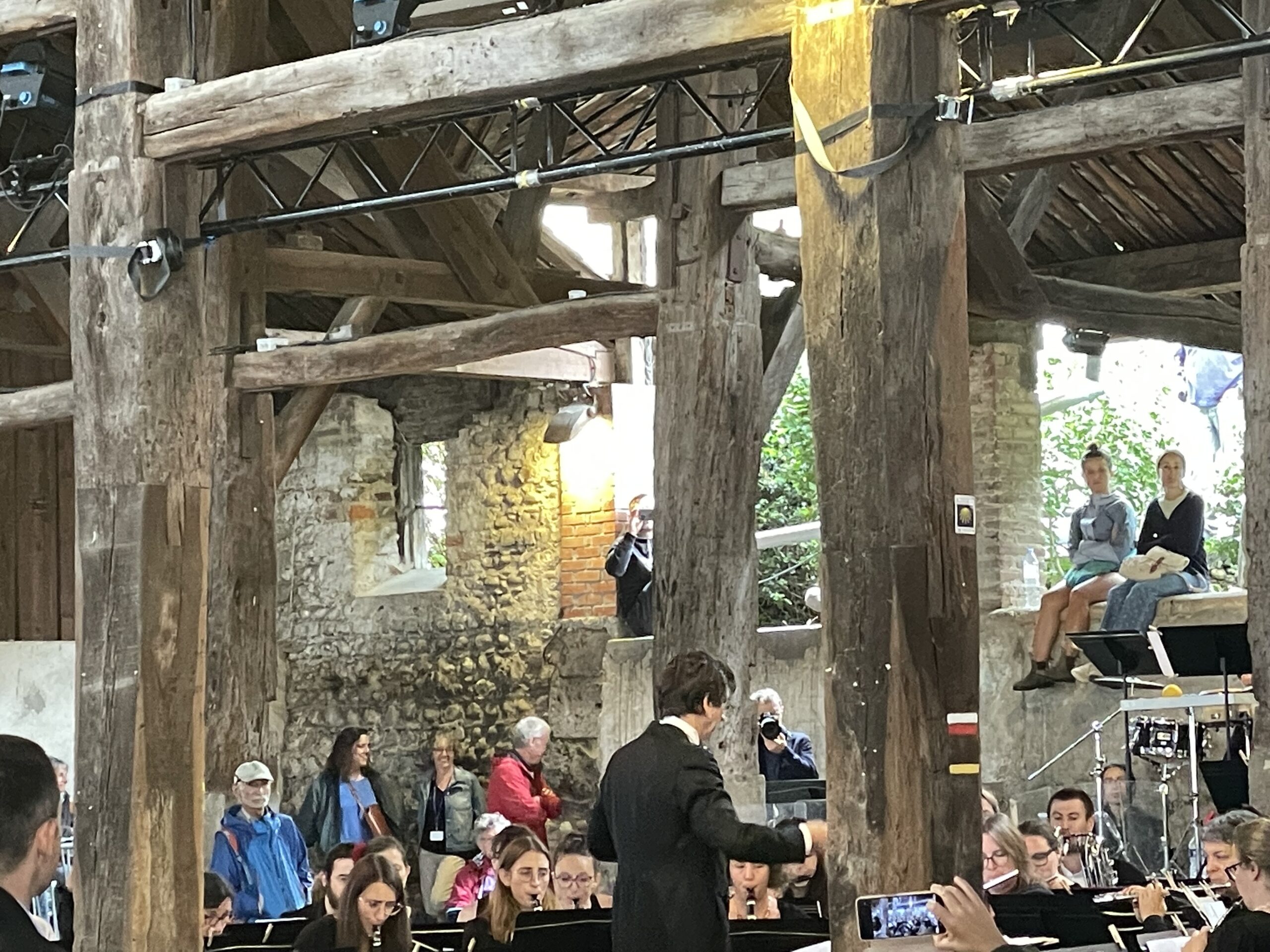 La public était massé sous la halle médiévale de la Côte Saint-André, pour certains et certaines assis en hauteur, afin d’écouter l’Ensemble à Vent de l’Isère dans un programme entraînant : Prokofiev, Florent Schmitt, Léonard Bernstein et Oscar Navarro. Le chef d’orchestre Éric Villevière expliquait le programme et la réparation des instruments avec générosité devant un auditoire très concentré. Le final sur West Side Story nous a presque fait danser.