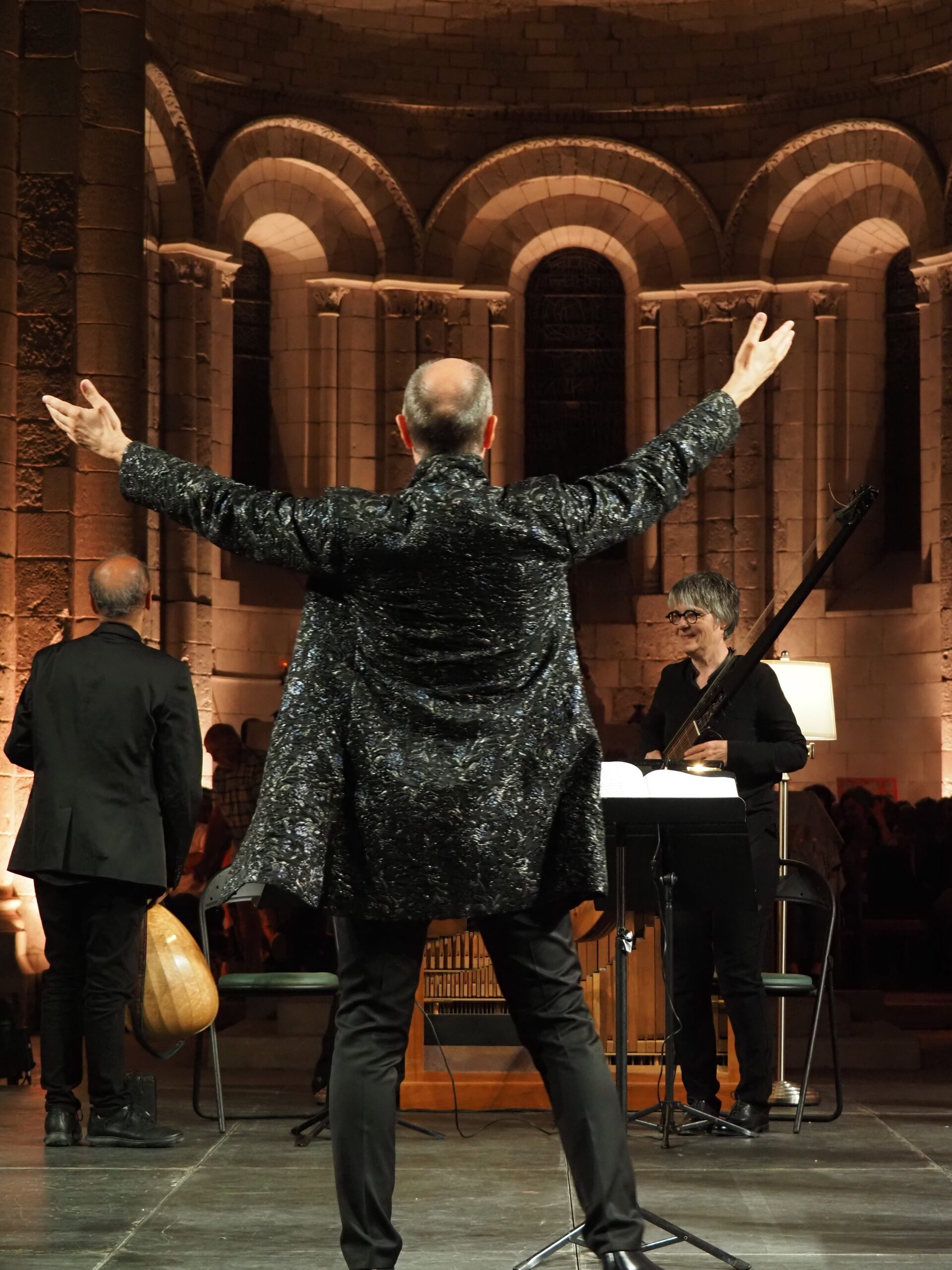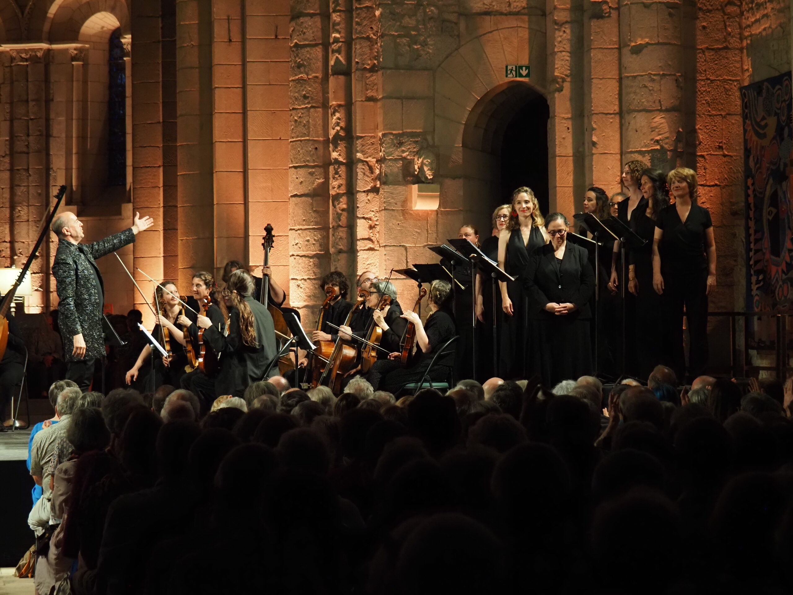 Lors de l’édition 2023, Hervé Niquet avait invité l’orchestre d’harmonie de la garde républicaine ; il a donc récidivé en invitant ce très bel orchestre au complet. Et c’est avec un programme festif et hétéroclite que la phalange militaire s’est installée dans les jardins de l’abbaye. L’espace étant vaste, c’est environ un millier de personnes qui étaient venues à cette soirée qui promettait beaucoup ; c’était sans compter sur la pluie, invitée importune du jour qui a obligé David Théodoridès et Hervé Niquet à abréger la soirée en supprimant trois ou quatre morceaux s’adaptant au fur et à mesure des changements d’humeur d’une météo capricieuse. Cela n’a pas empêché ceux qui avaient affronté la pluie de profiter au maximum de la performance magnifique de cette très belle phalange dirigée par un Hervé Niquet très en forme et plein d’humour.