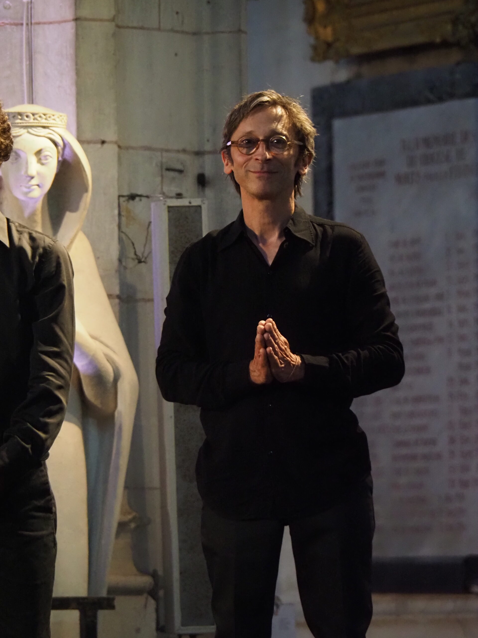 Le concert débute par Canzonetta spirituale sopra alla nanna : Hor ch’è tempo di dormire, une œuvre de Tarquino Mérula (1595-1665), interprétée par l’excellente soprano japonaise Michiko Takahashi. La voix éclatante de Takahashi parfaitement maîtrisée passe dans la cathédrale sans efforts même si le texte, lui, passe beaucoup moins bien. La pièce suivante est un Crucifixus de Claudio Monteverdi (1567-1743) pour quatre voix d’hommes ; c’est à partir de ce moment la que Geoffroy Jourdain arrive et dirige chanteurs et musiciens. Les quatre voix se marient à merveille sous la direction avisée de Jourdain qui utilise des tempos et des nuances idéaux. Mais Geoffroy Jourdain a aussi programmé des madrigaux pour deux, six, dix ou seize voix qui permettent à chacun de s’exprimer. Nous avons ainsi le privilège de découvrir des œuvres de Giovanni Legrenzi (1626-1690), dont nous avons d’ailleurs écouté un charmant motet chanté par deux très belles sopranos (« Dialogo delle due Marie : Quam amarum est Maria ; Harmonia d’affetti devoti, Libro primo, 1655 »), Antonio Lotti (1667-1740), Antonio Caldara (1670-1736) dont nous avons pu admirer le très beau Crucifixus à seize voix, Francesco Cavallli (1602-1676)… Autant de compositeurs qui ont laissé des œuvres de toute beauté. Mais l’orchestre n’a pas été oublié puisque Goeffroy Jourdain a programmé des œuvres qui les mettent en valeur. C’est avec une ritournelle extraite de Selva morale e spirituale 1640-1641 de Claudio Monteverdi que les musiciens des Cris de Paris commencent leur programme « personnel » ; mais c’est surtout la sinfonia de l’acte II de l’Orfeo de Monteverdi qui marque les esprits. Si l’orchestre interprète avec talent un Cantate Domino (extrait de Selva morale e sprituale) de Monteverdi arrangé pour orchestre c’est le théorbiste Bruno Hellstroffer qui a l’honneur de terminer le concert en interprétant avec talent et une belle simplicité une œuvre de Biaggio Marini (1594-1663) : Pretirata (Da Capo).