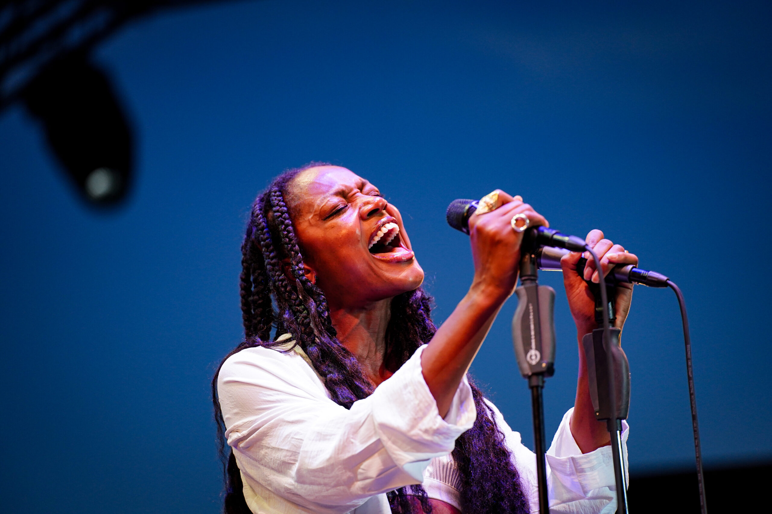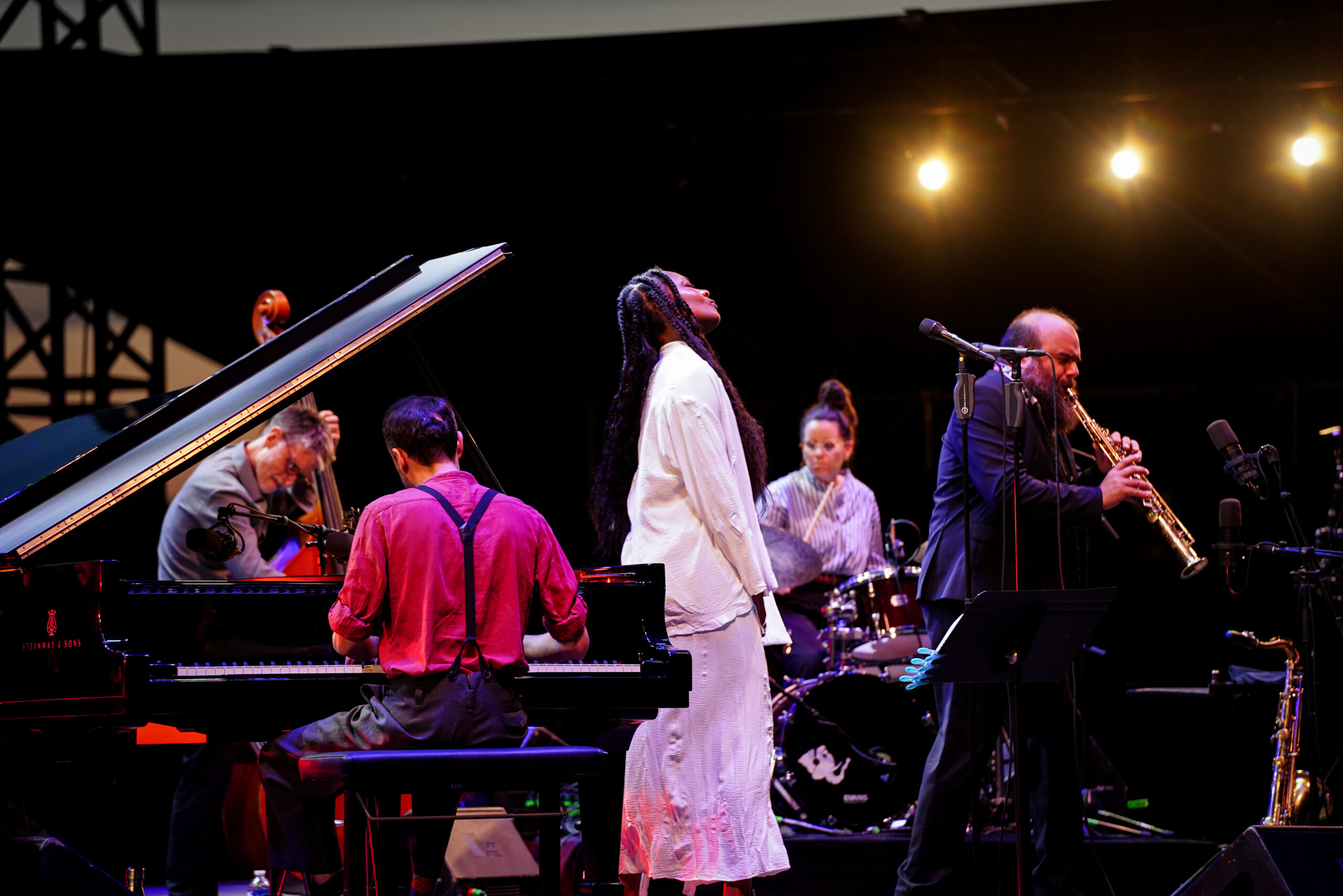 Entre tradition et modernité, Poetic Ways sculpte une matière ancienne pour la transformer en une création d’aujourd’hui. Le jazz comme transmission, le jazz militant, le jazz qui rassemble. Nous sommes le 14 juillet, Raphaël Imbert égrène quelques notes de la Marseillaise et le public chantonne. En ce soir de fête nationale, dans un contexte politique français tumultueux, il est à la fois puissant et apaisant de traverser ces émotions tous ensemble. Passion, tendresse et sarcasme. Humour aussi, lorsque Raphaël Imbert se met à souffler à la fois dans la clarinette et le saxophone, tel un enfant improvisant un numéro de cirque . Un son de saxophone expressif et puissant qui nous rappelle que le jazz est aussi une musique de fanfare. On reconnaît des airs d’avant-garde, de free jazz. Tout en contraste. Des tempos lents et des sons doux qui nous guident vers l’introspection avec les chants afro-américains. Des morceaux entraînants aussi avec des tonalités plus féroces où l’on ressent le groove, au sens propre du terme, c’est-à-dire le « sillon » en anglais, ou aller au fond de la note, dans le temps. Soudainement, un magnifique a cappella de Celia Kameni qui nous impressionne. Unités rythmiques et liberté se côtoient. Les barres de mesure sont abattues. Des airs de Albert Ayler, pionnier du free jazz, à la conquête d’une nouvelle étoile dans un élan de liberté .