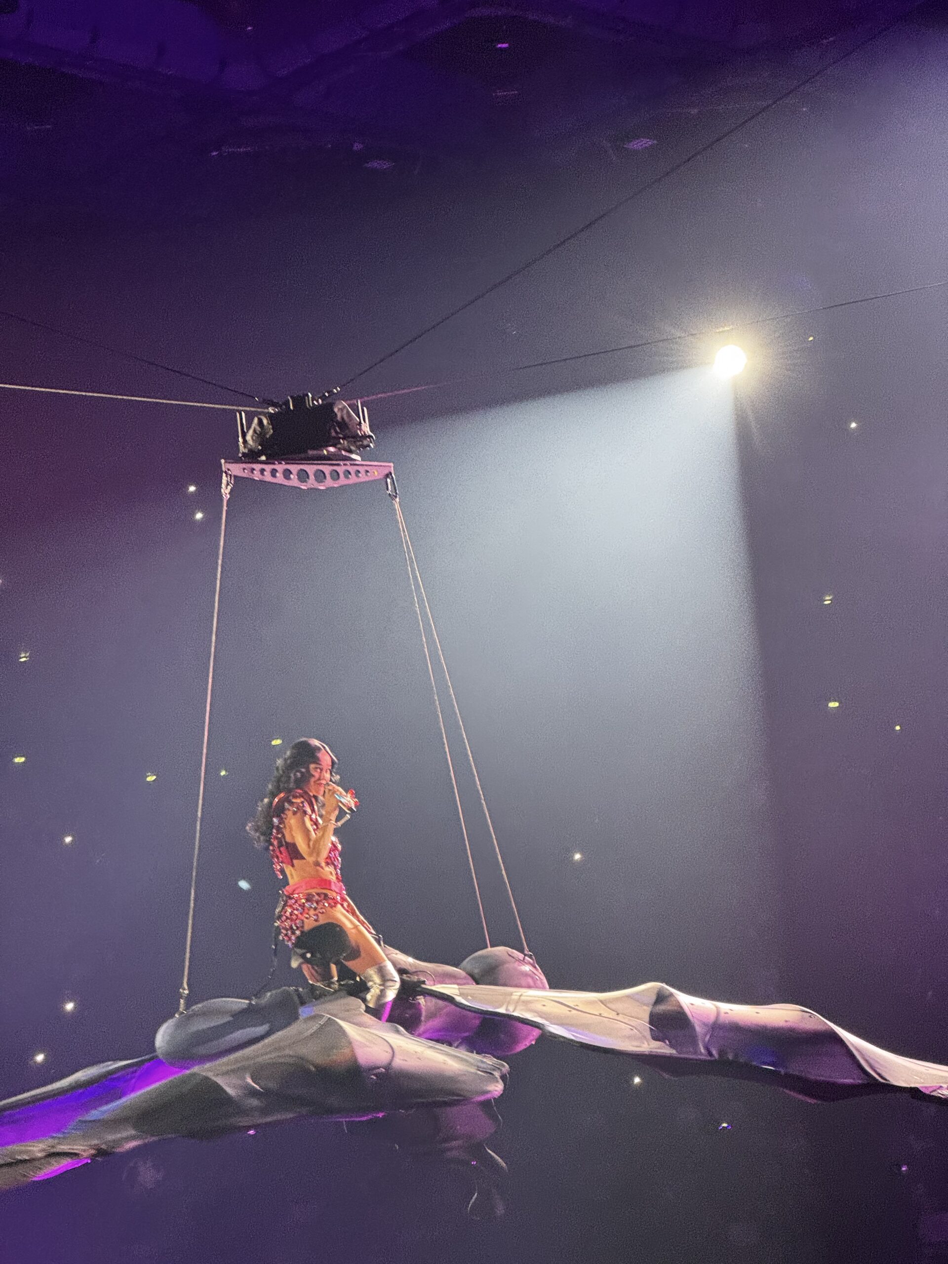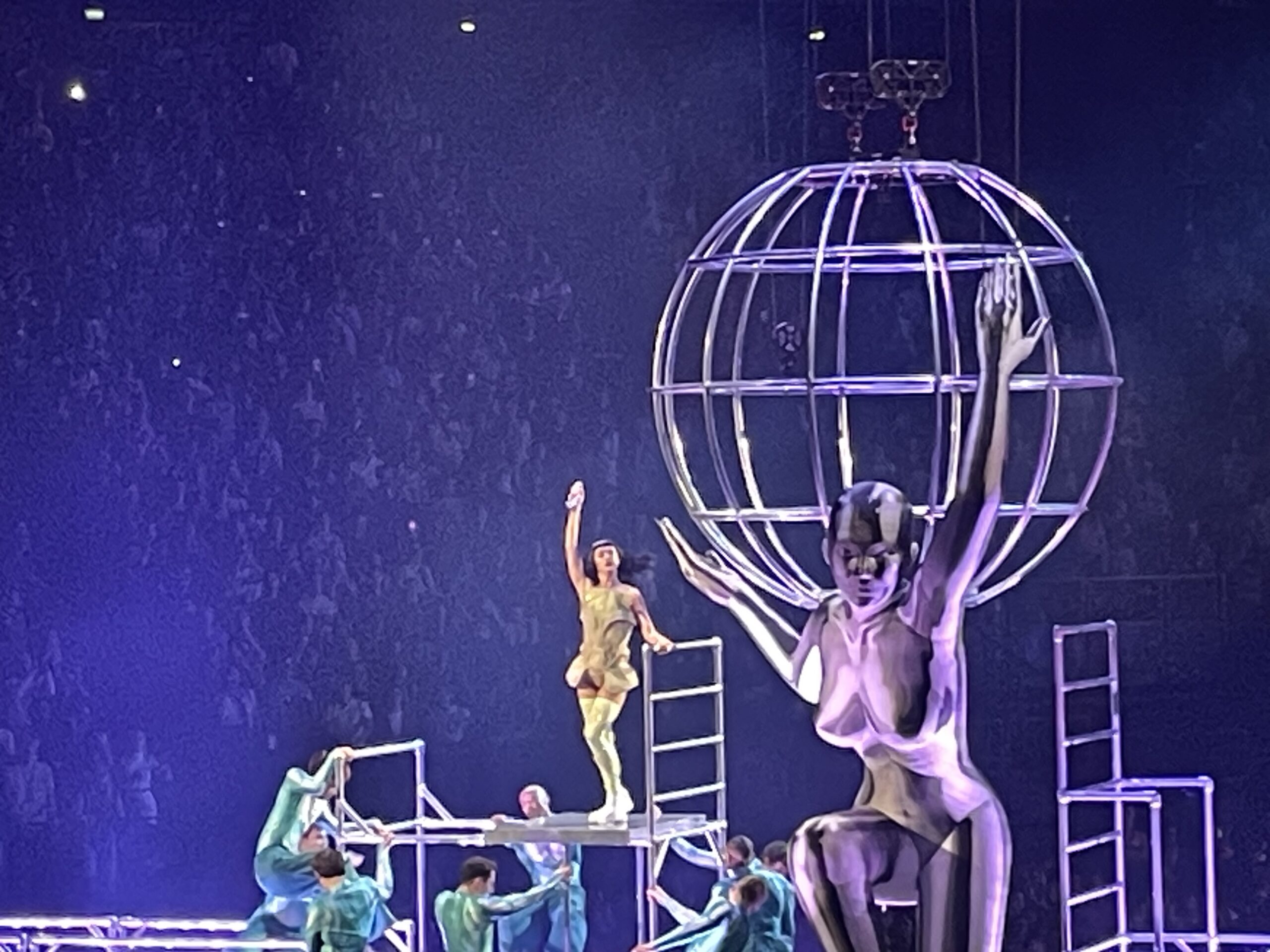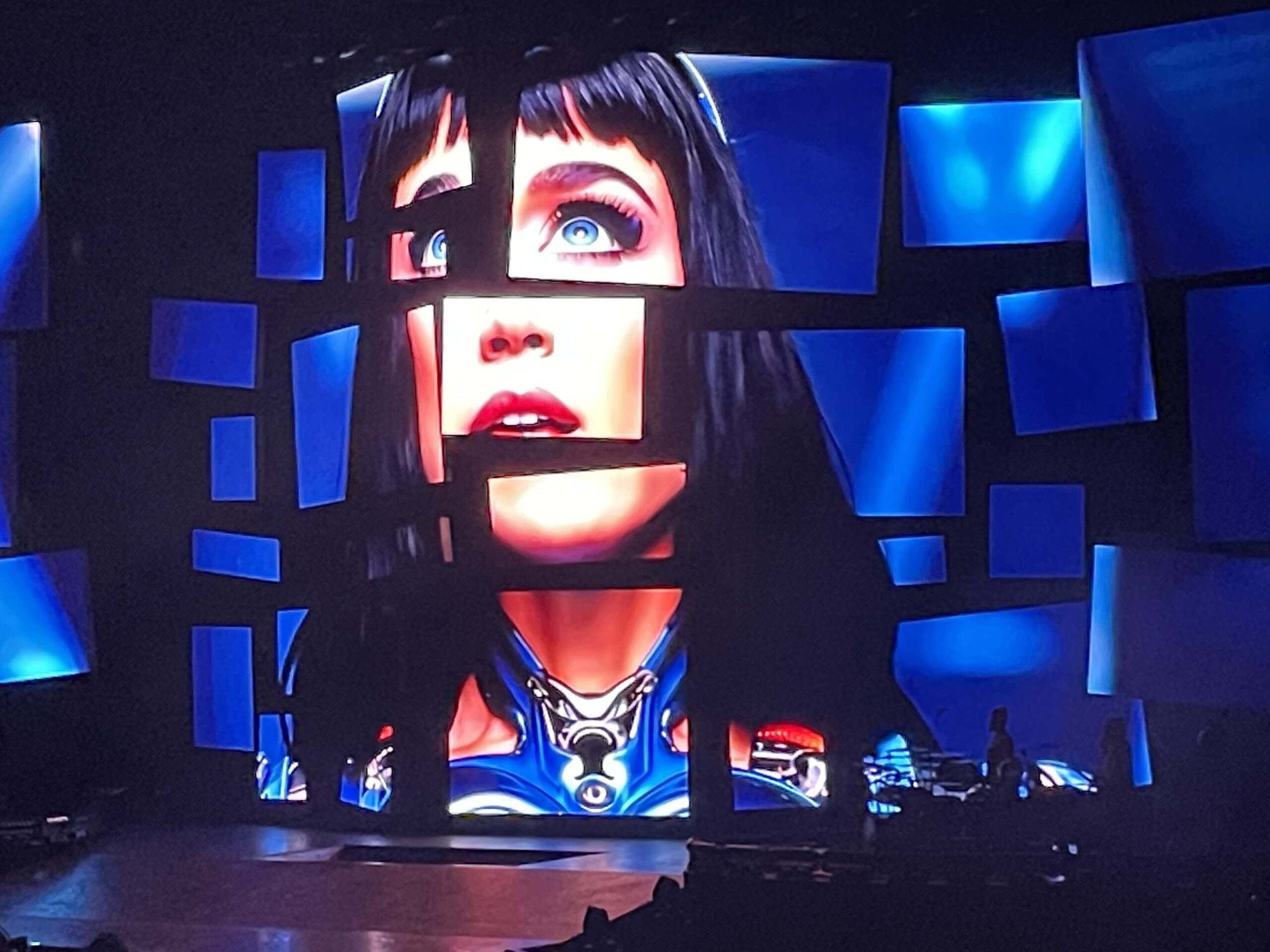 Et la machine qui porte la chanteuse et performeuse dans les airs est à la hauteur de enjeux. Sur scène, un écran de télévision démantelé ponctue les 5 actes du show qui se veut rétrospectif, avec une quête à la Zelda et un univers à la Star Trek comme prétexte pour revisiter le répertoire pop monumental qu’a porté la chanteuse. Dans la fosse, une grande scène en 8 fait courir la chanteuse, en même temps qu’elle encadre le public de la fosse, au centre une trappe permet à la chanteuse et aux danseurs d’apparaître et disparaître pour se changer. Dans les airs, tout un dispositif permet à Katy de surgir dans une cage aérienne branchée pour « Artificial », de célébrer « I kissed a Girl » dans une sphère pop au dessus d’une statue de la liberté qui célèbre l’amour, ou bien de chevaucher un papillon géant pour le « Firework » final. Avec 91 concerts dans le monde entier en 6 mois et près de deux heures de show parfaitement acrobatique en talons, Katy Perry est peut être une warrior encore plus impressionnante que la cyborg qui apparaît sur l’affiche du concert !