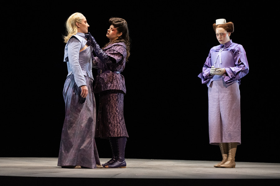 Berlin a fait un autre choix pour sa Première de Violanta : demander un filage au metteur en scène avec deux œuvres sans rapport apparent si ce n’est, pour la première, la proximité de l’époque où Korngold situe son histoire (Quinzième siècle à Venise), pour la deuxième des similitudes (discutables) dans le style musical.
