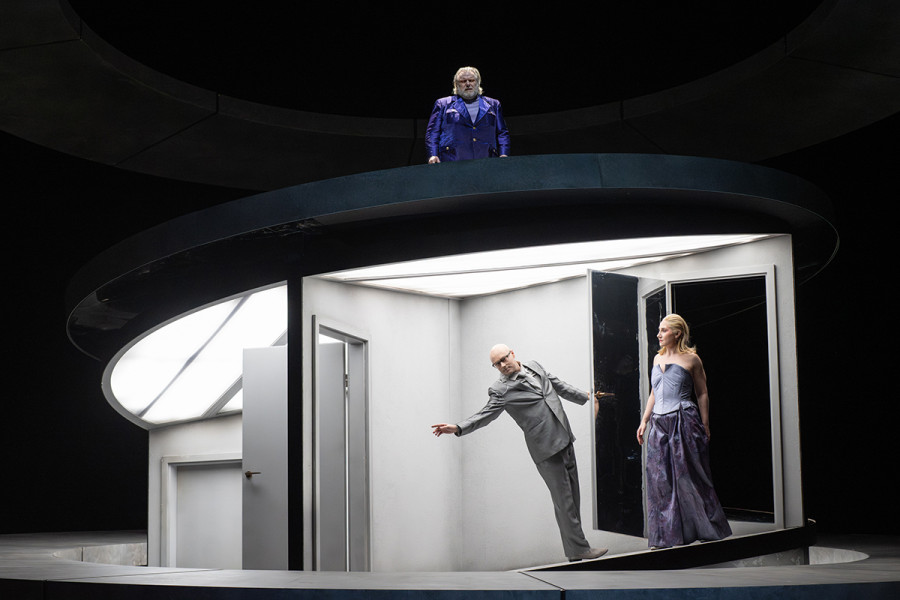 On ne retrouve rien de ce mélange vénéneux et explosif dans ce décor omniprésent de Jo Schramm, formé d’un énorme disque qui s’élève et dévoile un mécanisme d’une gigantesque vis en train de se dévisser, comme une sorte de tire-bouchon géant, ménageant des cloisons que Violanta devra franchir comme autant de cases d’un parcours intérieur initiatique.