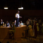 C’est Salvatore Caputo, le chef de chœur de l’Opéra de Bordeaux, qui a réalisé la transcription quasi parfaite de Porgy and Bess. Le piano et les percussions qui remplacent l’orchestre font un travail remarquable sous la direction avisée de Salvatore Caputo lui même. Le chœur, qui est au centre de cette transcription, réalise une performance exceptionnelle. Et l’on prend conscience de l’impressionnant travail réalisé par Salvatore Caputo dès 2023 en amont de la création de ce Porgy and Bess assez jazzy ; tant au niveau des recherches qu’au niveau de la partition originale, toujours très surveillée par les ayants droits du compositeur. Si l’on prend plaisir à écouter les principaux airs de l’oeuvre originale (Summertime étant, bien sûr le plus connu) on prend aussi un vrai plaisir à les voir évoluer et chanter « façon jazz » une musique intemporelle dont Gershwin avait le secret.