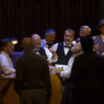 Salvatore Caputo ne s’est pas contenté de diriger depuis le premier rang de sièges de l’auditorium, de manière parfaite d’ailleurs, il a aussi continué à faire travailler le choeur de l’Opéra National de Bordeaux. Il nous avait déjà séduit en novembre dans Iolanta de Piotr Iilitch Tchaïkovski (1840-1893), mais dans cette version originale du chef d’oeuvre de Gershwin, il montre toute l’étendue de son talent. Vocalement la trentaine d’artistes du choeur fait montre d’un niveau très élevé suivant son chef avec une précision millimétrée, mais la mise en espace et les pas de danse lui permettent de se mettre en valeur avec un plaisir gourmand.