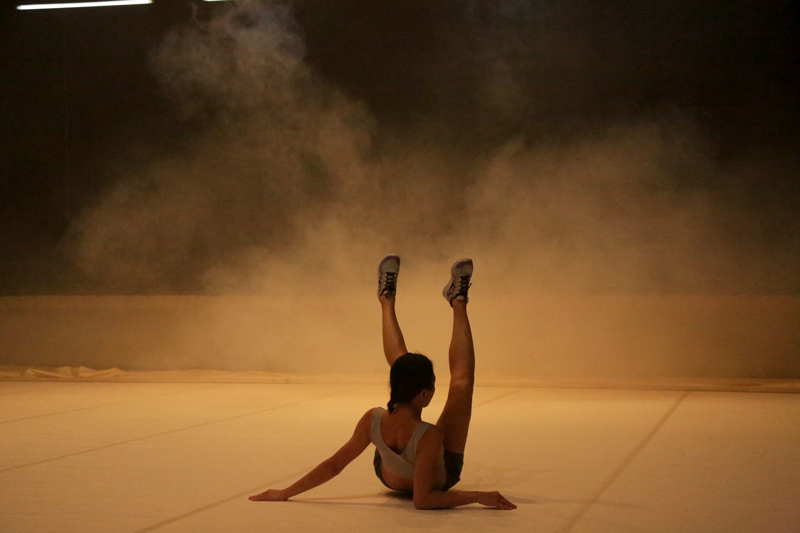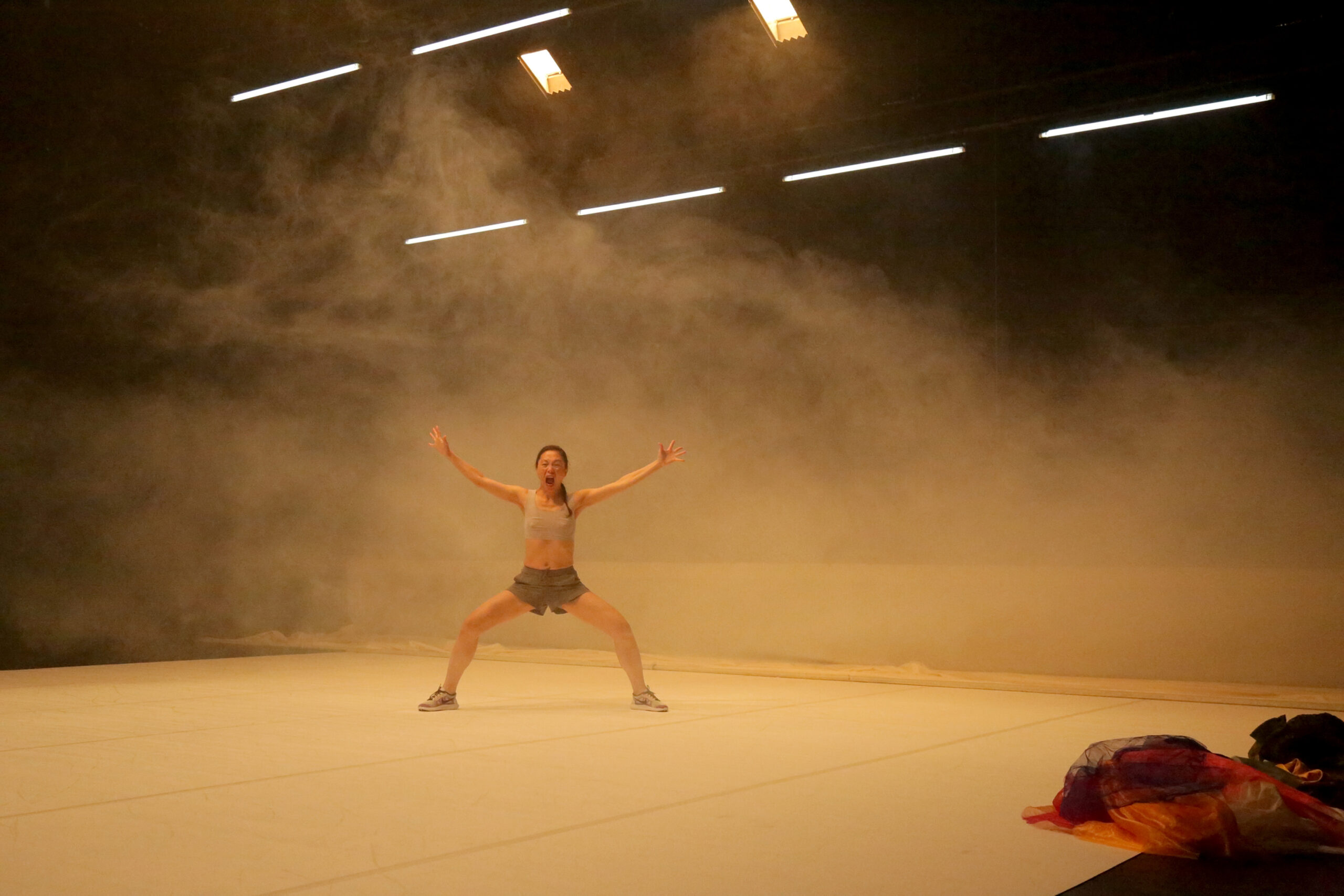 Au tout début du solo Ban-Phing Shan, on craint un peu. On y voit la danseuse I-Fang Lin parée d’une robe à grans bouffants d’inspiration asiatique, très élégante, de belle matière, et de teintes chatoyantes. Agenouillée, elle entame ce qui semble une cérémonie pour fruits et encens. Autour de cette présence inspirante, le plateau du Théâtre de la Vignette paraît très vaste, au soir de la clôture du Festival Montpellier Danse. Et tout son fond est occupé par un immense drap-écran, comme laissé là un peu flou, sur lequel palpite un immense paysage de crêtes boisées. Une machine à fumée – bien trop sonore, comme si souvent – noie généreusement tout cela dans une atmosphère vaporeuse tenace.