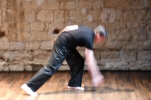 On pense à un Monsieur K kafkaïen dansant, cherchant à se libérer d’un espace qui le contraint ou même l’emprisonne (le titre suggère une recherche d’identité). Courses, chutes au sol, ralentis, bras raides qui emportent le corps, moments joyeux et lyriques avortés, musique parfois discordante, on est là dans une quête existentielle fascinante, excellemment dansée et fort bien construite. Moins épuré que L’Oiseau, ce solo est une autre facette du registre expressif (et non « expressionniste », la danse allemande des années 1920 avait en effet été nommée Ausdrückstanz, danse d’expression) que Waehner adopta dans les années 1980, renouant avec Wigman, et que la critique ne comprit pas forcément à l’époque, peu habituée à ce vocabulaire et cette intensité.