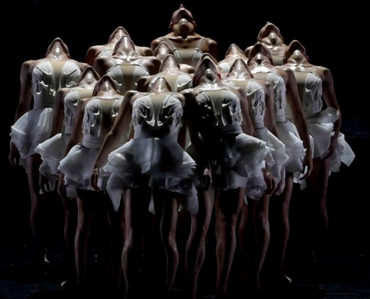 Le costume est une robe presque de maille, droite, mais elle aussi fragile et bancale. La musique au départ est faite de désagréments qui fonctionnent à merveille.