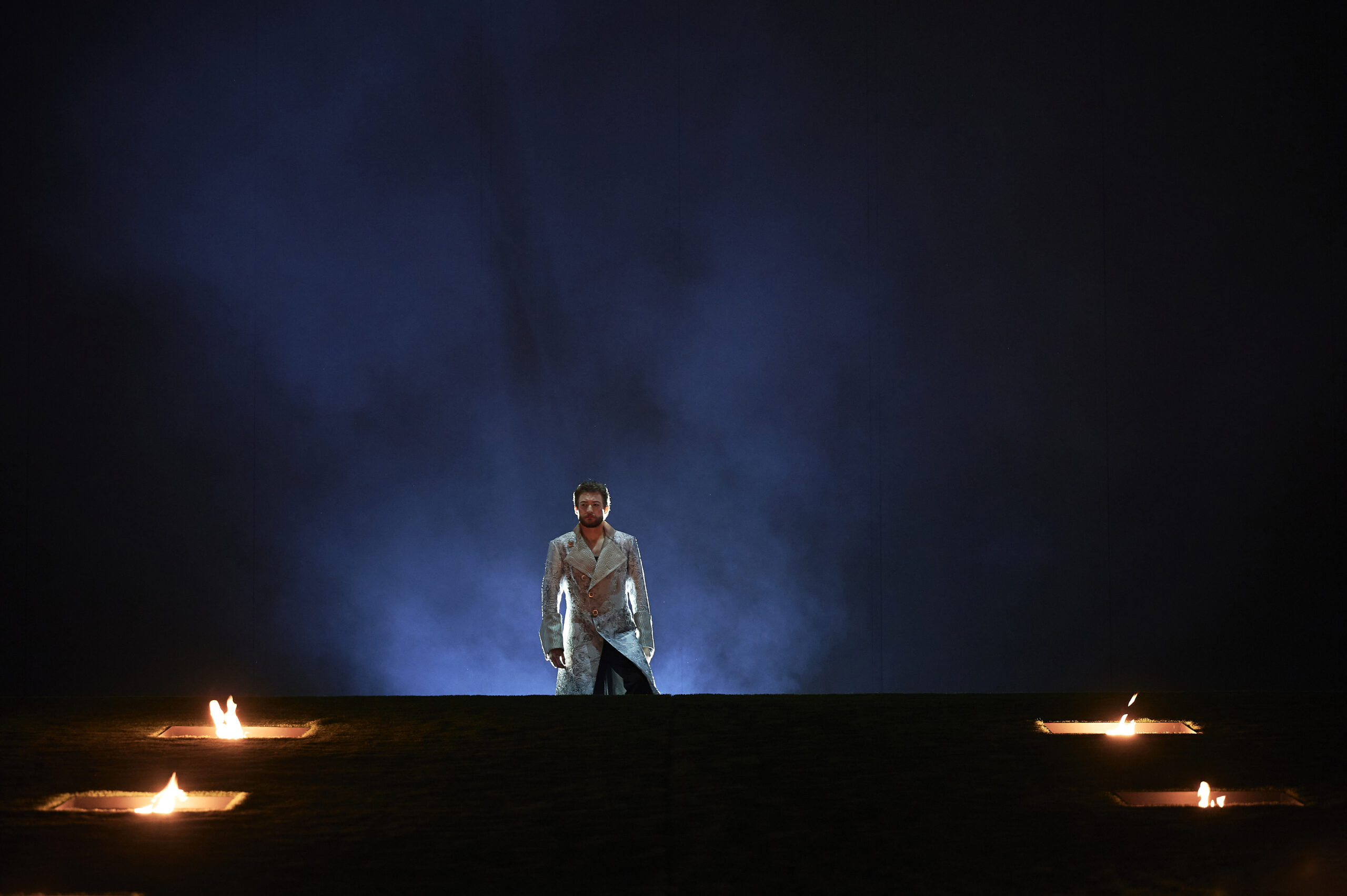 La représentation est également servie à notre sens, par la mise en scène de l’américain R.B. Schlather, remarquablement dépouillée qui joue, elle aussi, sur les effets théâtraux auxquels les chanteurs, tous excellents acteurs, font honneur, renouant avec un vrai souci d’authenticité quant au style de l’époque. La beauté visuelle est renforcée par les décors de Anna-Sofia Kirsch, les costumes de Katrin Lea Tag et les éclairages de Jan Hartmann.
