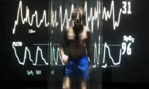 L’artiste, c’est à la fois le cobaye et le meneur, la victime et l’inquisiteur. Son corps est un objet d’étude qui avance sous nos yeux et les images défilent, toutes plus délirantes les unes que les autres. Il nous parle à travers la paroi de verre, les mots jaillissent dans une spontanéité déroutante. C’est à l’image de son travail, et notamment de la fameuse Transfiguration, autre performance durant laquelle le spectateur ne distingue plus la frontière entre l’oeuvre et l’artiste. Qui crée quoi? Olivier de Sagazan emploie son corps comme un objet d’étude et se livre entièrement au regard du public. On en ressentirait presque de la douleur et de l’angoisse, pour les plus empathiques d’entre nous. Le corps est dans une vulnérabilité qui semble parfois à peine jouée…mais la force du comédien et sa résistance sont aussi remarquables. Là est le propre de l’artiste, lutter et questionner sa condition, mais surtout s’affirmer dans sa faiblesse.