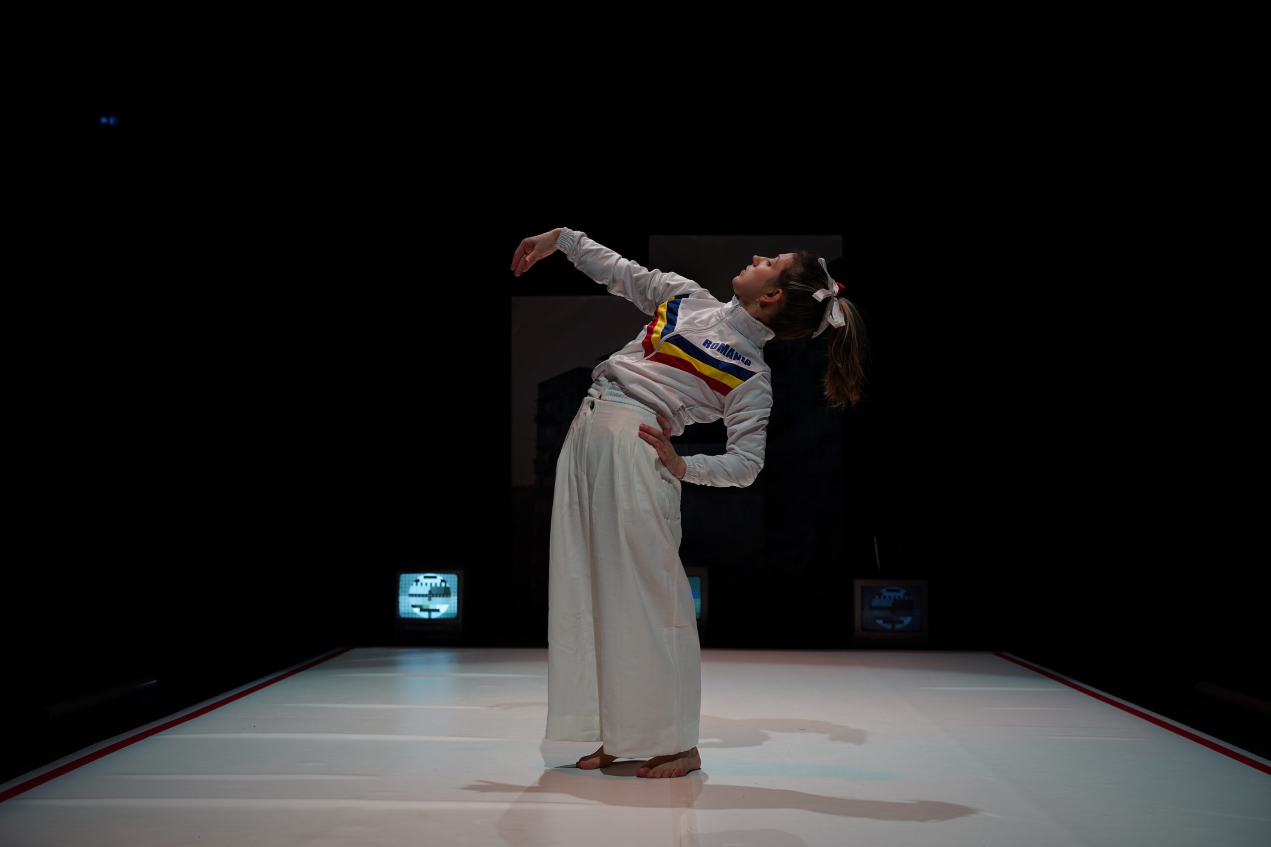 L’autre personnage central de la pièce est l’eau. Le chorégraphe apparaît écrasé par le jet puissant d’un tuyau d’arrosage. Il reste là, trempé, à recevoir cette étrange sentence. Évidemment, nous sommes en 2023, l’eau est utilisée en circuit, elle n’est pas jetée. Le reste du décor tient dans une bâche de protection qui sert de fond de scène. À partir de là, il faut se décaler, avoir 10 ans à nouveau et se laisser faire.