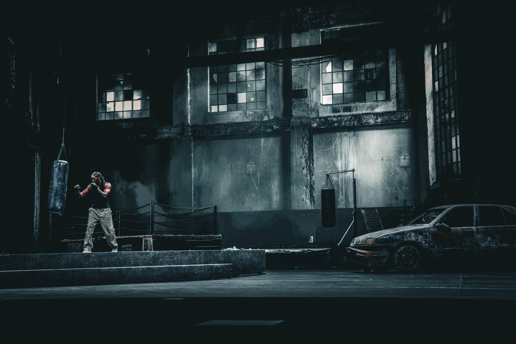 A la salle de boxe, dans une scénographie spectaculaire, Hubert qui incarne la contenance face à la violence, rappe sa haine et sa fatigue du système. Quelques tableaux plus loin, Vinz prend une densité différente face à Leila, sa petite amie, qui lui demande « Tu m’aimes ? ». La justesse de l’interprétation du texte et de la chorégraphie arrache quelques frissons, et fait de ce tableau peut-être le plus fort des deux heures du spectacle. Plus tard, à Paris, Vinz, Hubert et Saïd jettent à la gueule des toits leurs rêves. On note aussi l’importance donné à la complexité de ce système grippé par deux raps où la plume de Youssoupha donne la parole aux familles des personnes victimes de violences policières mais aussi aux policiers.
