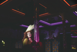 Sattyna, enfin, souffle un vent d’érotisme insolent. Championne de gymnastique rythmique dans une autre vie, elle met sa souplesse et sa précision au service de numéros sulfureux où elle détourne les clichés avec humour. Tantôt serveuse virevoltante dans la salle clin d’œil aux domestiques invisibilisées et racisées des bordels tantôt icône disco sous une pluie de lumière et une boule à facettes, elle mêle grâce et subversion. Sattyna aime jouer avec les frontières : du classique au pop, du cabaret au sport, elle plie les codes du patriarcat pour mieux les faire éclater.
