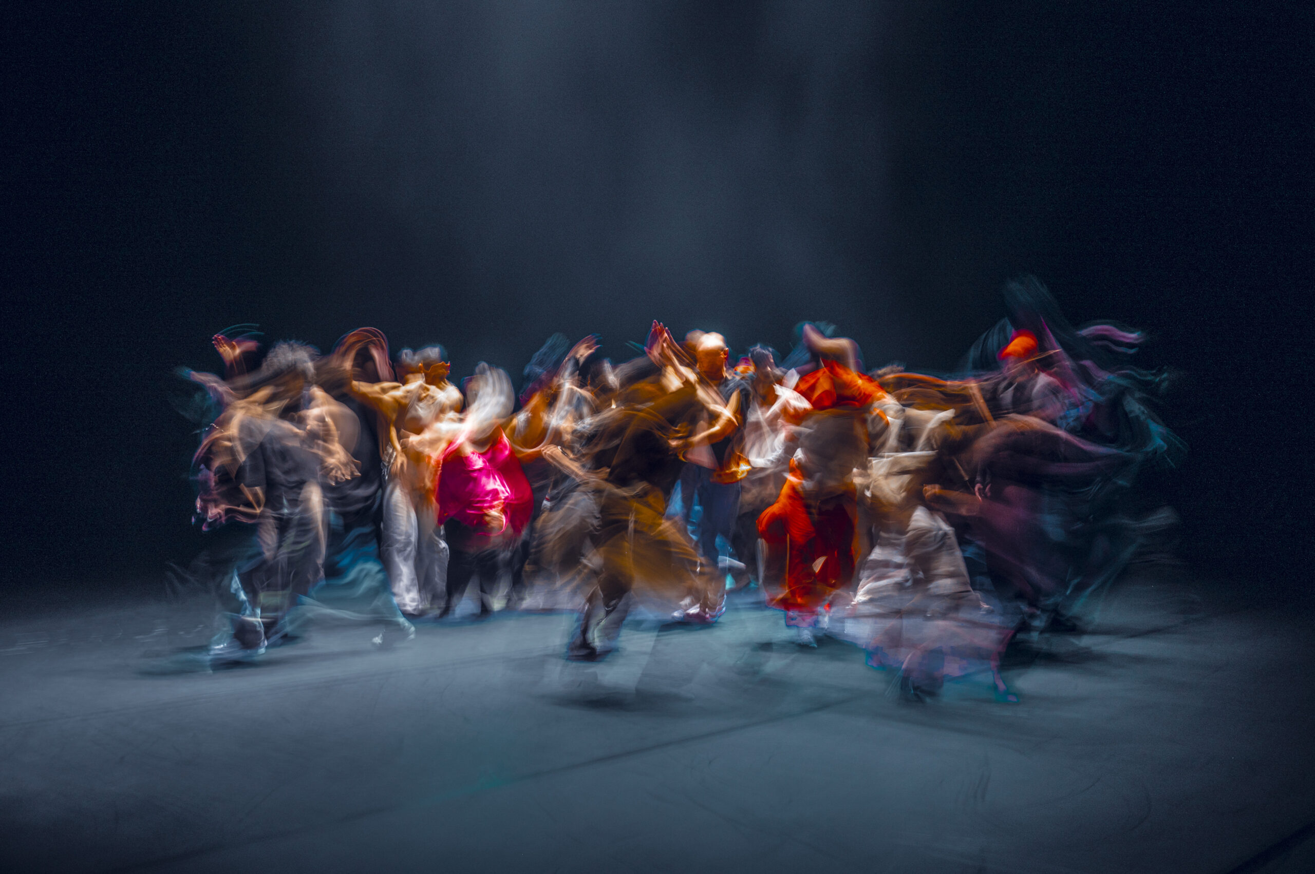 La soirée a été rythmée par plusieurs séquences dansées, en présence de divers danseurs et chorégraphes, et toujours en improvisation. Trois performances collectives étaient prévues à plusieurs moments de la soirée et entrecoupées de danses plus intimes, portées par Nadia Vadori-Gauthier elle-même, et par la chorégraphe Johanna Faye. Improvisant d’abord dans deux solos consécutifs, elles se sont retrouvées en fin de soirée dans un duo tout en complicité, sur une musique aux tonalités flamenco.