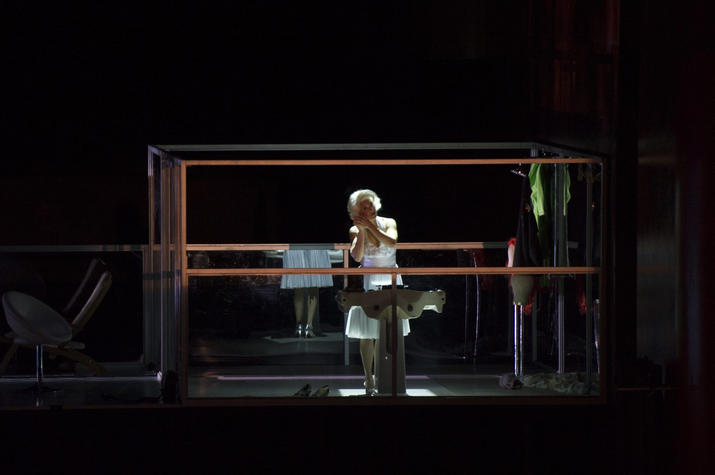 Alors que l’œuvre donne la parole à la femme fatale, puisant dans le Hollywood des années 1950, la mise en scène de Krzysztof Warlikowski n’a pas pris une ride depuis 2013. À travers ses références cinéphiles (dont le mythe de Marilyn Monroe et la fascination de King-Kong) elle est d’abord irréprochable par le fil rouge qu’elle tire sur le lien entre les stars et l’immortalité. Elle est ensuite sublime visuellement, alternant le cinéma dans le théâtre, éclairée de tous côtés (jusqu’au sol qui fait effet de sixième mur !), et des salles de bains reflétant les marasmes intimes. Lumière et colorimétrie parfaite l’équipe du metteur en scène polonais nous régale de fantômes élégants. Enfin, à l’heure où l’on nous propose souvent que le metteur en scène s’efface devant l’œuvre, la proposition tenue et la direction d’acteurs et d’actrices exigeantes de Warlikowski quitte son piédestal de proposition néoclassique pour nous rappeler combien nous aimons alterner entre plaisir et réflexion sur notre société à l’opéra. Et dans cette Affaire Makropoulos, l’immortalité et ses malaises continuent magnifiquement à nous donner à voir et à penser.