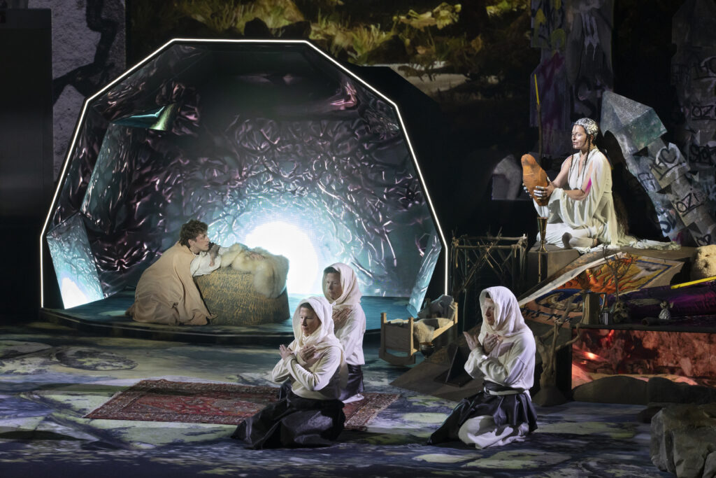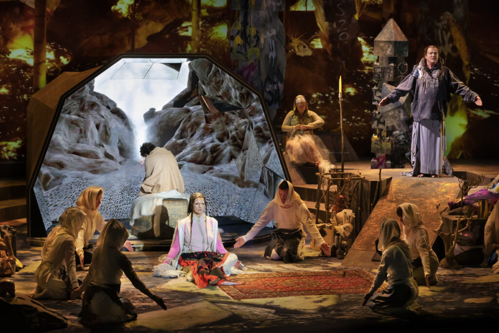 Lors de l’introduction orchestrale qui précède ce dernier acte, on apprécie tout particulièrement de voyager à nouveau au-dessus des monts et des vallées, comme Parsifal cherchant son chemin pour rentrer à bon port et ramener la lance. Ce récit du wanderer, très typique du romantisme allemand, ce voyage à travers la nature qui semble vivante, sera raconté par Parsifal lui-même dans l’un des plus beaux airs de sa propre partition. Kiril Serebrennikov, autre metteur en scène de génie pour ce Parsifal (Vienne, 2021), avait également illustré magnifiquement ce voyage d’hiver dans la neige.