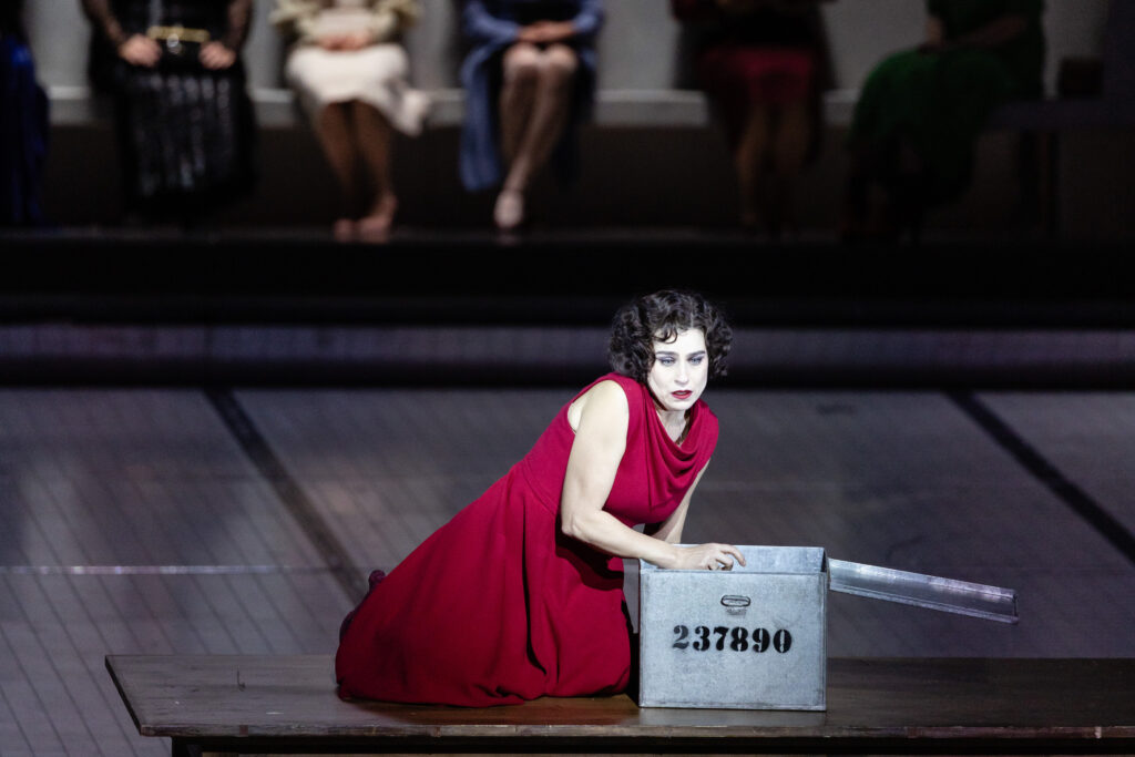 Pour cette reprise, l’Opéra de Munich a mis les petits plats dans les grands en invitant Asmik Grigorian pour le rôle-titre. La soprano lituanienne y revient aujourd’hui après avoir marqué, on se le rappelle, sa présence dans le spectacle de Romeo Castellucci à Salzbourg en 2018. Entre temps, une carrière menée comme un tourbillon lui a permis des prises de rôles parfois surprenantes chez Puccini, Verdi, Wagner, Tchaïkovski, Bellini (et bientôt Bizet). Elle est absolument époustouflante en Salomé et s’affirme, sans conteste, désormais comme l’une des plus grandes titulaires du rôle – toutes périodes confondues serait-on tenté de dire.