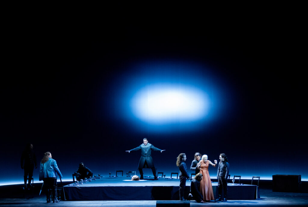 Pourtant, le handicap principal de cette nouvelle production barcelonaise repose sur la mise en scène de Bárbara Lluch, bien pauvre, bien peu imaginative, bien peu en capacité de transcender l’histoire d’amour et de mort légendaire qui nous est contée. Le premier acte commence de belle manière avec une esthétique épurée, un rapport de forces établi entre les hommes (de Tristan en l’occurrence), soudards qui jouent avec la tête de Morold, et les femmes (Isolde et Brangäne qui se fait quasiment violer) unies par une sororité solidaire. En retour de cette violence sous-jacente, Isolde se vêt d’un habit blanc immaculé que l’on peut voir comme costume de mariage comme costume de guerrière (Brünnhilde n’est pas loin…) et n’hésite pas à s’attaquer à Kurwenal armé d’une dague.
