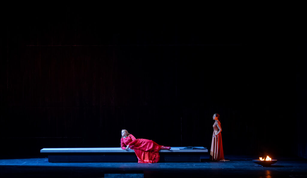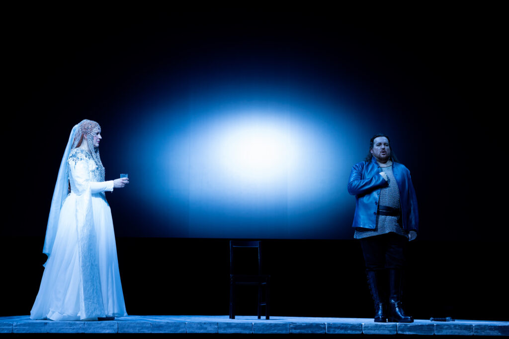 Après une retraite prise en mars 2025 pour donner la vie à des jumeaux, c’était la grande rentrée, pleine d’enjeu et d’espoirs pour la soprano norvégienne. Lorsque Lise Davidsen impose sa marque, c’est d’abord plus par la puissance de son émission que par la séduction de son timbre. Mais, dès son entrée en scène, elle impressionne par sa stature, par son port de princesse rousse et bien sûr, par sa tessiture large et son aisance à colorer ses phrases selon les sentiments contradictoires qui l’assaillent. Totalement souveraine, elle porte le premier acte d’une voix toujours inspirée, souvent rageuse, parfois cassante. Elle se fait vulgaire, jambes écartées, comme Tristan lorsqu’elle l’imite et parle de lui. Chacun de ses gestes est signifiant, elle est Isolde ABSOLUMENT (et va sans doute l’être de nombreuses années). Dans la scène avant l’arrivée de Kurwenal (« Sein Lob hörtest du eben »), elle est ensorcelante tant les accents qui portent l’attisement de la haine vis-à-vis de l’assassin de Morold sont empreints de vérité. La scène suivante alors qu’Isolde reçoit Tristan, prépare sa vengeance, et que dans la fosse Susanna Mälkki allie puissance et subtilité dans la musique de Wagner, est de la même veine. Parions que, quelques représentations plus tard, lorsque Davidsen se sera complètement approprié le rôle, cet acte I sera anthologique grâce à elle.