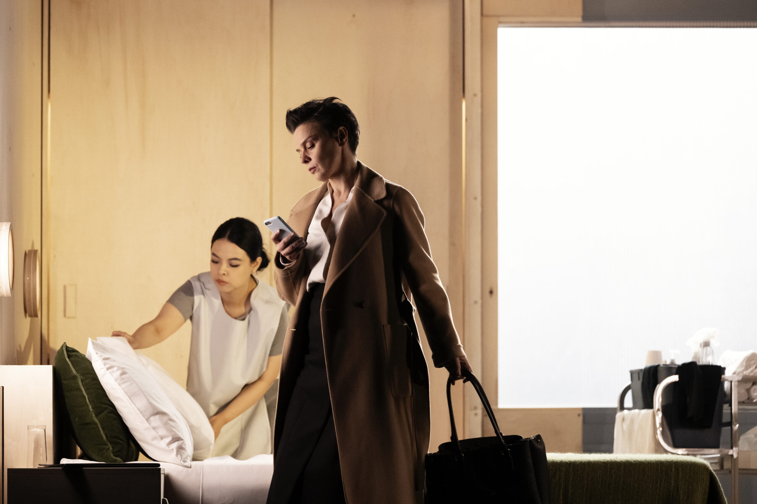 Le spectateur est néanmoins prêt à se laisser embarquer dans cette histoire, aussi peu convaincante soit-elle, parce que Ausrine Stundyte – qui a déjà travaillé avec Katie Mitchell dans sa production récente de la Femme sans ombre à Amsterdam – porte la pièce avec son exceptionnel talent d’actrice. Hautaine et impassible quand la situation le demande – par exemple lorsqu’elle se met à quatre pattes devant Prus pour obtenir la formule convoitée –, elle sait néanmoins laisser transparaître assez de chaleur humaine et de tendresse pour accueillir avec une certaine bienveillance la jeune femme aux yeux de biche qui vénère le sol qu’elle foule, tout en lui volant ses bijoux, son vibromasseur et ses anciennes affiches.
