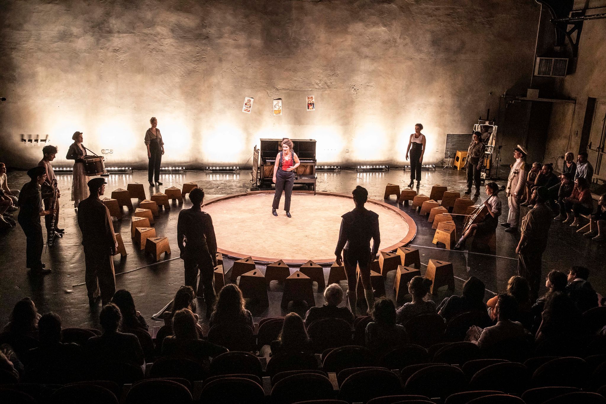 Carmen, d’après Georges Bizet, Mise en scène : Jeanne Desoubeaux, Direction musicale : Jérémie Arcache et Igor Bouin, Assistanat à la mise en scène : Louise Moizan, Scénographie / espace / habillage : Cécilia Galli, Costumes : Alex Costantino assisté de Nathalie Matriciani, Avec : Anaïs Bertrand (Carmen), Igor Bouin (Zuniga), Solène Chevalier (violoncelle), Jeanne Desoubeaux (Lillas Pastia), Jean-Christophe Lanièce (Escamillo/Morales), Vincent Lochet (clarinette), Pauline Leroy (Mercedes), Flore Merlin (piano), Martial Pauliat (Don José), Agathe Peyrat (Frasquita). 2h.