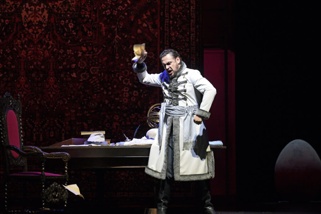 C’est le ténor russe Dmitri Golovnine qui campe Grigori le faux Dimitri sans lui conférer la moindre noblesse. Il en fait une sorte de raté, anti-héros par excellence, un personnage qui aspire à la gloire, mais n’est qu’un traître – faux, fourbe, ambigu et totalement corrompu.