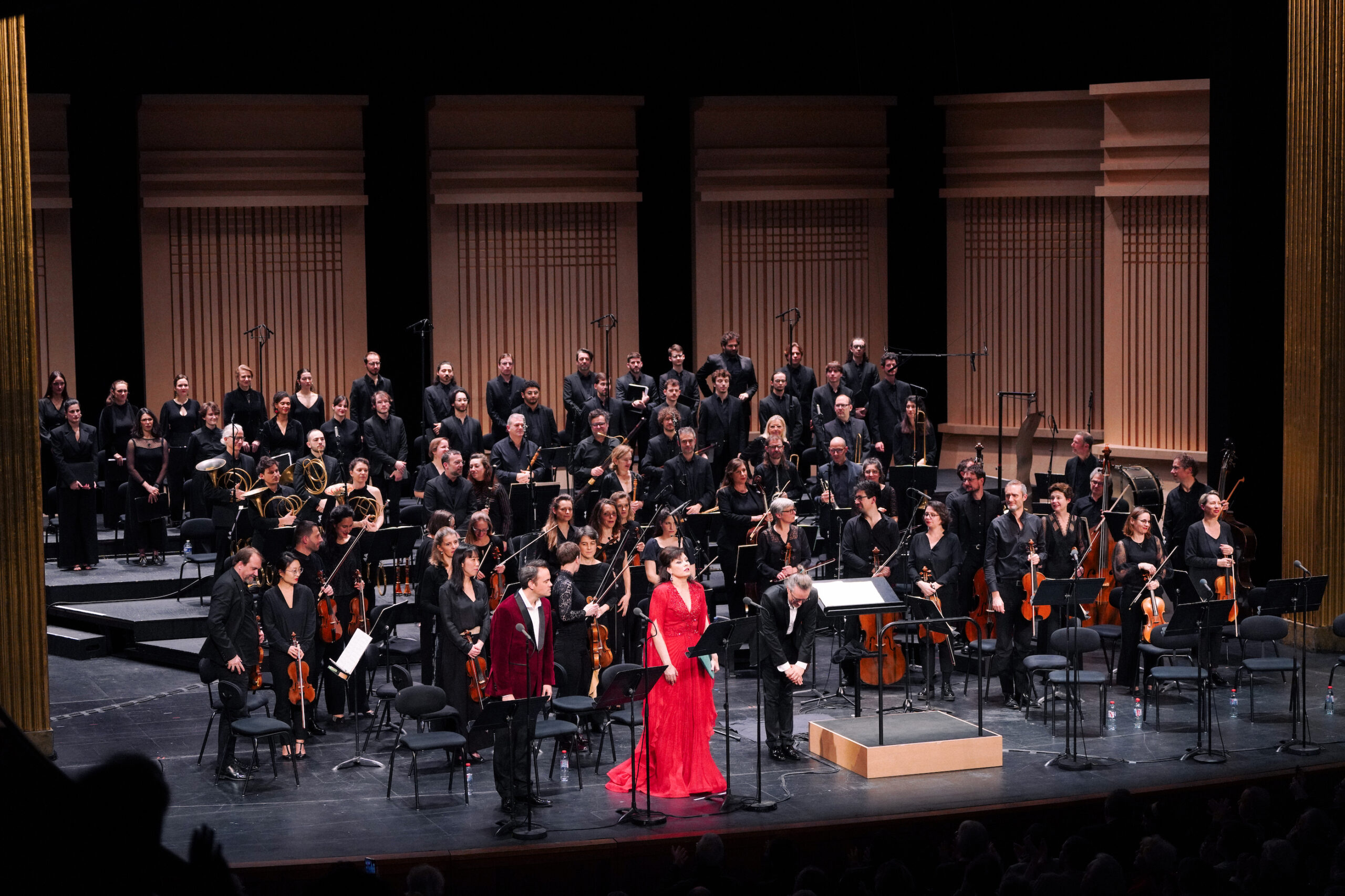 Lors des nombreux intermèdes, Donald Runniclès et les musiciens sont filmés en direct et projetés sur un écran. L’orchestre est grandiose, délicat, puissant, toujours soyeux et souple.