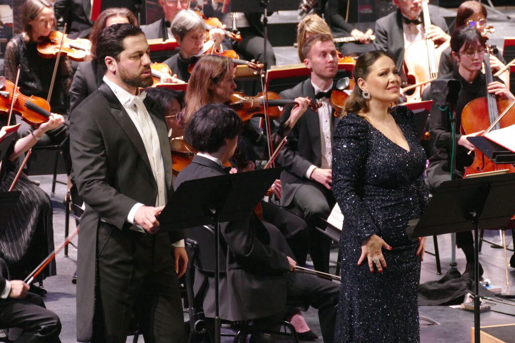 La fiancée, c’est Nino Machaidze qui fait d’abord valoir, avec Amalia, ses qualités indéniables de belcantiste en démarrant sa première scène et l’air « Lo sguardo avea degli angeli » avec une ligne pure et un aigu facile. Le legato est exemplaire et les syllabes détachées de l’air s’accorde avec des aigus ronds. Le très bel air du début du deuxième acte (« Tu del mio Carlo al seno ») où elle est accompagnée par la harpe et fait preuve d’un magnifique contrôle du souffle, s’inscrit dans une veine similaire.