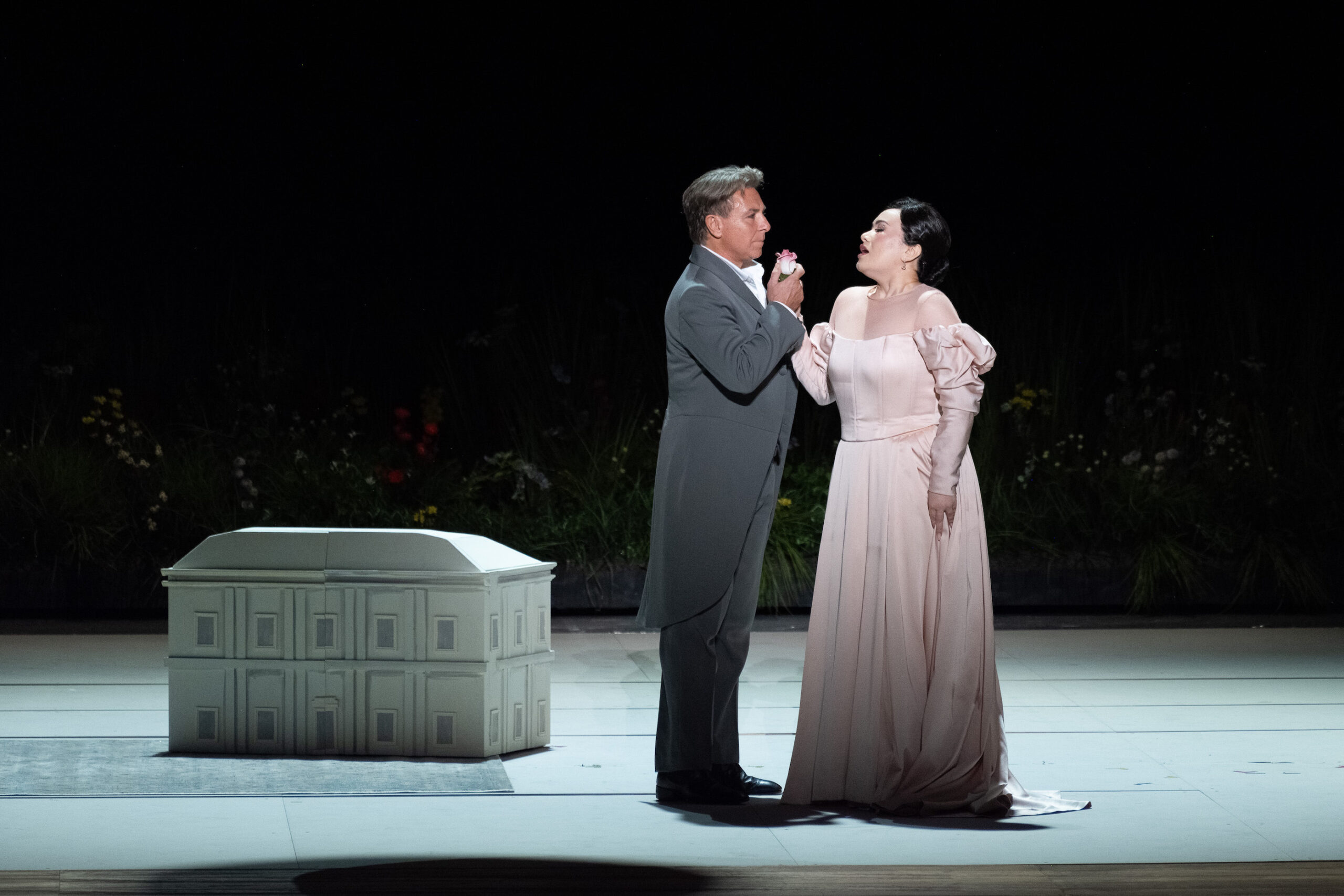 La direction de David McVicar semble opérer sur le même mode. Celui-ci semble mettre en difficulté les interprètes plutôt que de leur offrir un écrin. Ici, donc, Elettra devient une princesse qui minaude en se maquillant, caressant son miroir tant elle s’y trouve belle. Elle joue de ses longs cheveux noirs pour séduire Idamante. Le public dans la salle sourit devant si peu de finesse et autant de clichés. Mais surtout il semble désorienté : qui sont ces deux suivantes masquées de blanc, vêtues comme leur maîtresse d’un kimono et marchant à petits pas saccadés sans lever les pieds ? Se sont-elles trompées de salle et devaient-elles jouer dans Madame Butterfly ? Ou peut-être Turandot ? C’est sans doute dans le dernier air de la princesse « D’Oreste, d’Aiace » que la dichotomie entre la beauté de l’interprétation et l’incompréhension de la mise en scène est la plus forte. Alignées les unes derrière les autres, accroupies, Elettra et ses deux suivantes se lancent dans des mouvements qui ne dépareraient pas dans un spectacle d’Holiday on Ice. C’est stupéfiant ! On finit par être tant obnubilé par cette gesticulation que l’on en oublie d’écouter cet air pourtant magnifique.