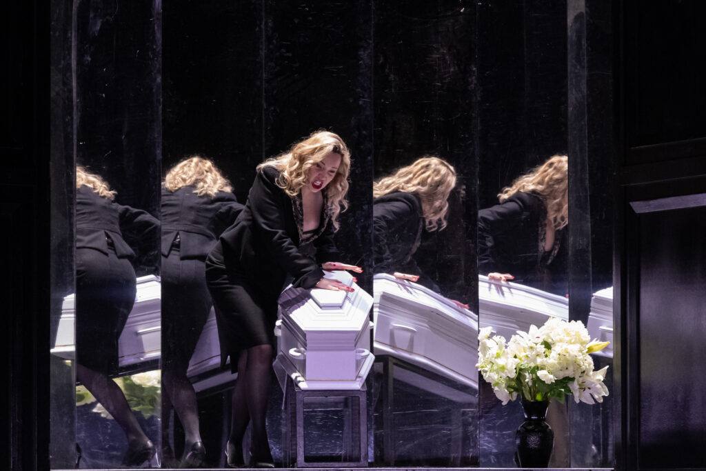 La production de Pierre-Emmanuel Rousseau, inaugurée à Rouen en juin 2025, fait le voyage au Teatro Massimo. Elle bénéficie d’une distribution quasi irréprochable menée par la fabuleuse Semiramide de Vasilisa Berzhanskaya.