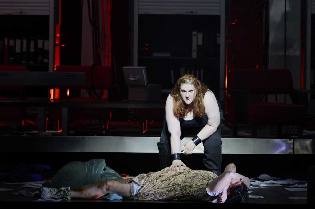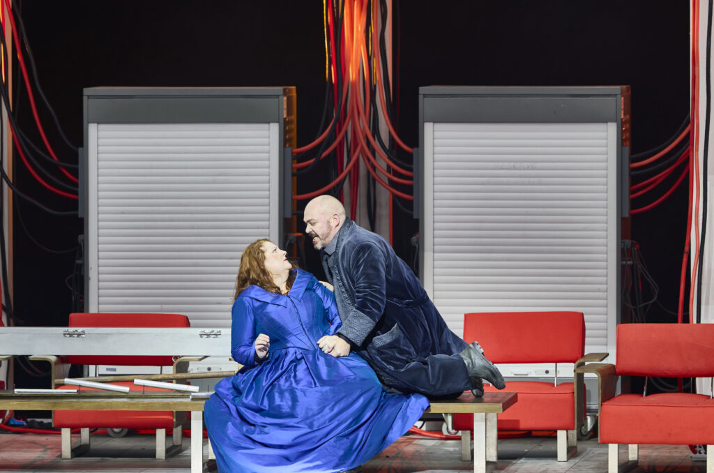 D’une manière générale, La Walkyrie est articulé autour d’une suite de duos, souvent de confrontations. Siegmund face à Sieglinde, Fricka face à Wotan, Wotan face à Brünnhilde par deux fois. À chaque fois, Wagner laisse s’épancher les sentiments. Et ce qui est passionnant avec cette mise en scène, c’est que, dans les duos qui convoquent un rapport de force, ces face-à-face prennent un côté ambivalent. Fricka n’est-elle destinée qu’à être une matrone revêche face à son époux infidèle ? Pourrait-elle, au contraire, être une femme débordante de sensualité, à la sexualité inassouvie ?