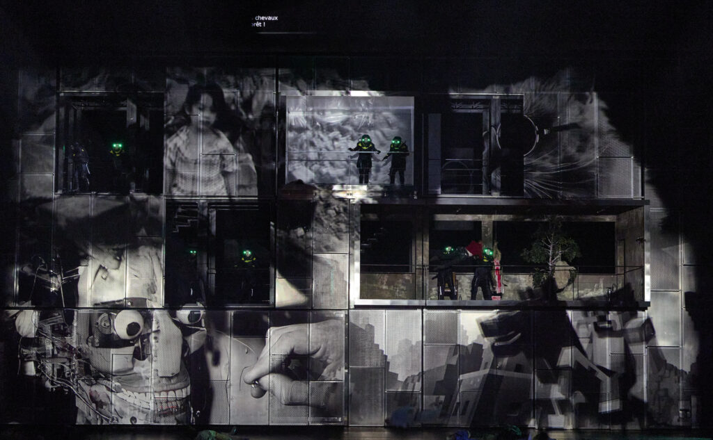 La note d’intention du programme de La Walkyrie explique que le Walhalla est devenu une sorte de quartier général du « Big data ». Les câbles qui relient, surveillent, envahissent sont omniprésents, mais ce monde montre ses limites quand, à l’extérieur, les guerres se multiplient, des guerres protéiformes, « militaire, nucléaire, bactériologique, mentale et neuronale ».