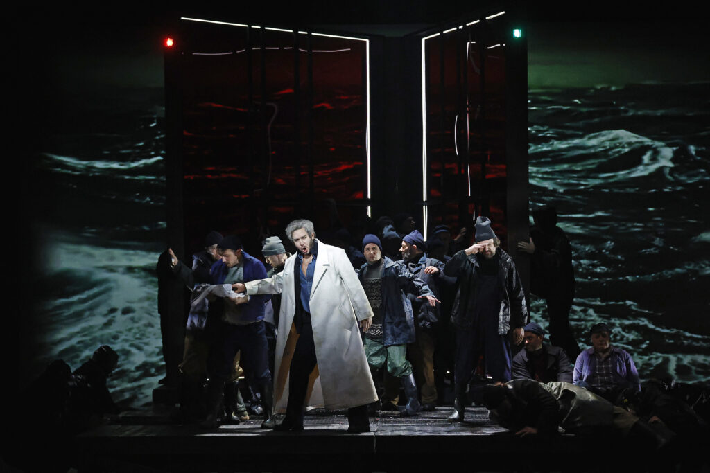 Lors de la scène initiale de naufrage, les migrants sont secoués rythmiquement par la houle issue de la musique de Wagner (et c’est beau : dommage que l’une d’elle vomisse en gros plan, ce détail ultra réaliste inutile gâche un peu l’idée). Durant le grand air initial du Hollandais, « Die Frist ist um », la partie lente, « Dich frage ich », est mise en valeur avec finesse : Ben Glassberg en fait presque une berceuse rythmiquement, tandis que le Hollandais, à ce moment, berce de droite à gauche une migrante sur son épaule.