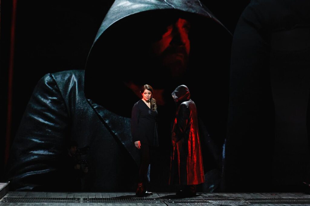 Celui de Senta est plus réussi : la simplicité de son costume noir corrobore l’idée que, dès le début, la fille du capitaine vit dans sa bulle, extérieure au drame, malgré la direction d’acteurs affûtée : une Senta déjà ailleurs, loin de la transe habituellement mise en scène lors de la ballade. Elle traverse l’histoire comme en apesanteur, ce qui rend sa transformation finale en quasi Carmen quelque peu dérangeante.