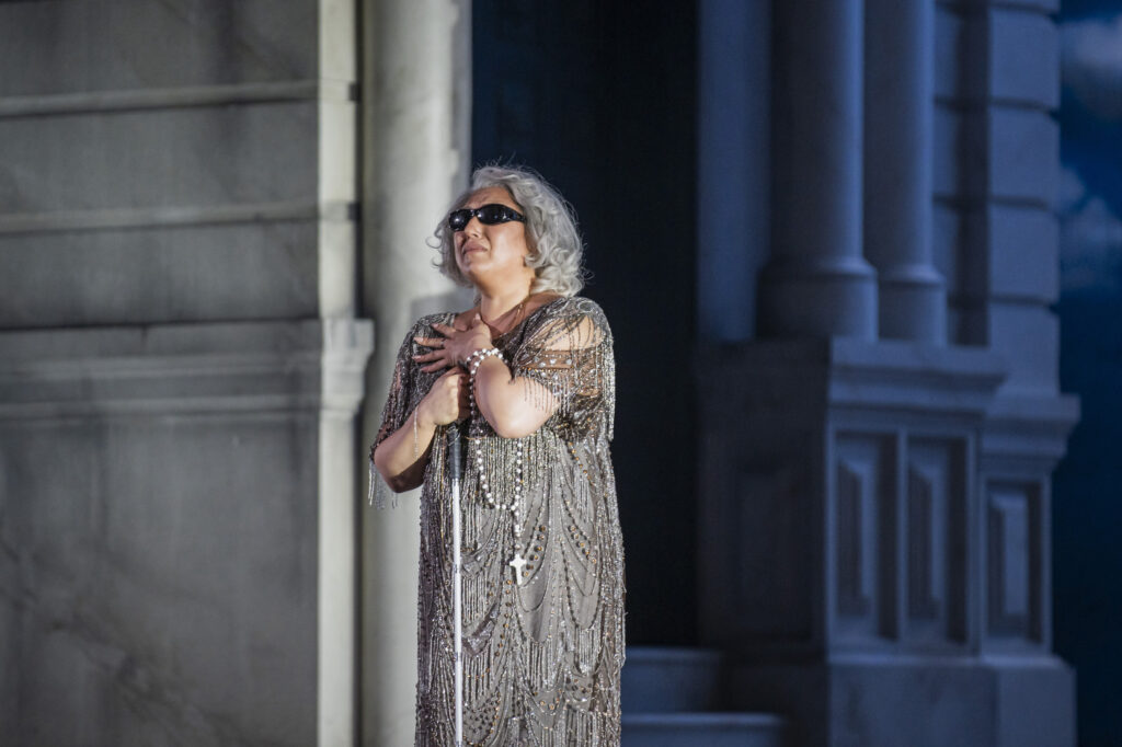 Anita Rachvelishvili devait revenir avec le personnage de la Cieca (la mère de Gioconda) au Festival de Salzbourg en mars 2024. Elle avait dû déclarer forfait, mais nous la retrouvons enfin à Athènes dans la même production et (après une Carmen à Vérone pour laquelle il n’y a pas eu beaucoup d’échos) cela représente sa véritable rentrée lyrique après ces longs mois « de galère ». Certes, les efforts fournis pour cette rentrée provoquent encore quelques difficultés dans l’émission qui perturbent quelque peu la ligne de chant et un léger manque d’assurance en scène. Mais les immenses qualités qui ont fait de l’artiste, l’une des plus grandes mezzo-sopranos de notre temps, cette projection fabuleuse, ces graves abyssaux sans paraître jamais artificiels sont bien là, et sa performance va bien au-delà d’un simple retour. Plus que de la saluer, on est d’abord tenté de la remercier d’avoir honoré ce rendez-vous malgré les démons qu’elle a probablement dû affronter pour ce faire.
