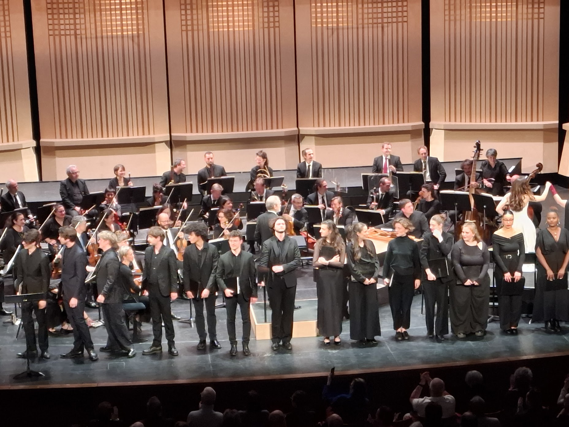 Saluons d’abord les performances fraiches, précises et mélodieuses du Jeune chœur de paris | CRR de Paris – Ida Rubinstein. Les choristes du Conservatoire à rayonnement régional ont du talent et savent très bien évoluer sur une scène dans les étroits passages qui leur sont réservés et qu’ils occupent avec beaucoup d’à-propos, restituant son aspect théâtral à la senerata.