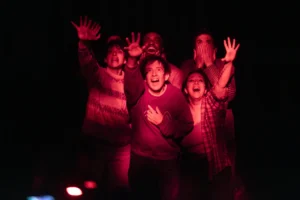 Le décor devient une machine à rêver. Par un stratagème aussi drôle que sensible, Quillardet fait jaillir ses interprètes (Morgan Balla, Anna Jouan, Guillaume Laloux, Titouan Lechevalier, Josué Ndofusu) de dessous ce lit, comme des images que l’on convoque pour se croire plus fort quand on dort. Thomas Quillardet est, pour rappel, un metteur en scène fasciné par la culture populaire : on l’a vu dresser le portrait de TF1 dans Une télévision française et, il y a quelques années, se concentrer sur les histoires d’amour dans le cinéma de Rohmer. À mots doux ne fait pas exception : Mylène Farmer est une superstar qui, depuis 40 ans, fascine toujours autant ; le retour de « Désenchantée » dans les chansons les plus écoutées en ce moment en est le témoin. Et si vous ne savez pas à quoi ressemble un premier rang d’un concert de Mylène, allez voir, parce que Thomas Quillardet, lui, il sait, et il montre : les yeux fous embués de larmes et les gorges qui se serrent devant l’icône, dans un culte laïque.