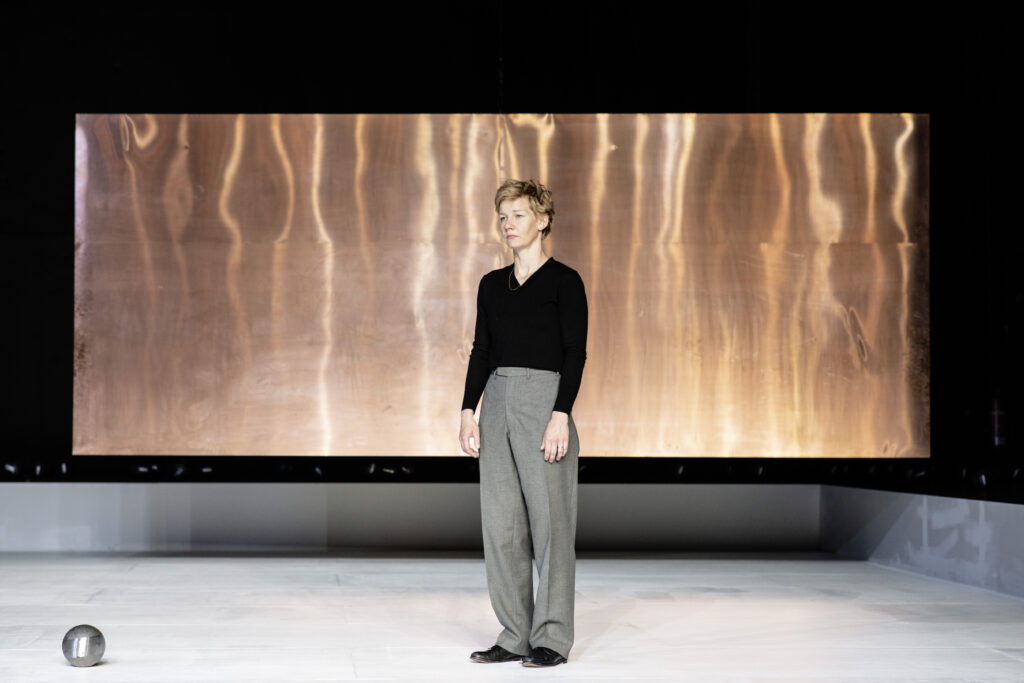 Tabouret, escabeau, écran, lampes, costumes etc.… La relation à l’objet est au cœur de la mise en scène … Ça valse, ça change à chaque séquence, un peu trop sans doute. On aimerait un peu de calme et un peu moins de volonté à étonner ; la profusion d’informations rend parfois l’attention difficile et provoque un recul face à un jeu qui flirte avec le démonstratif. Le rythme est soutenu, mais on aimerait respirer de temps en temps. De même un peu plus de nuance dans les voix qui restent souvent dans la même tonalité donnerait sans doute du relief au texte ; également un meilleur dosage de l’intensité dans la déclamation nous éviterait de perdre le fil des mots. Mais ce sont les premières représentations.