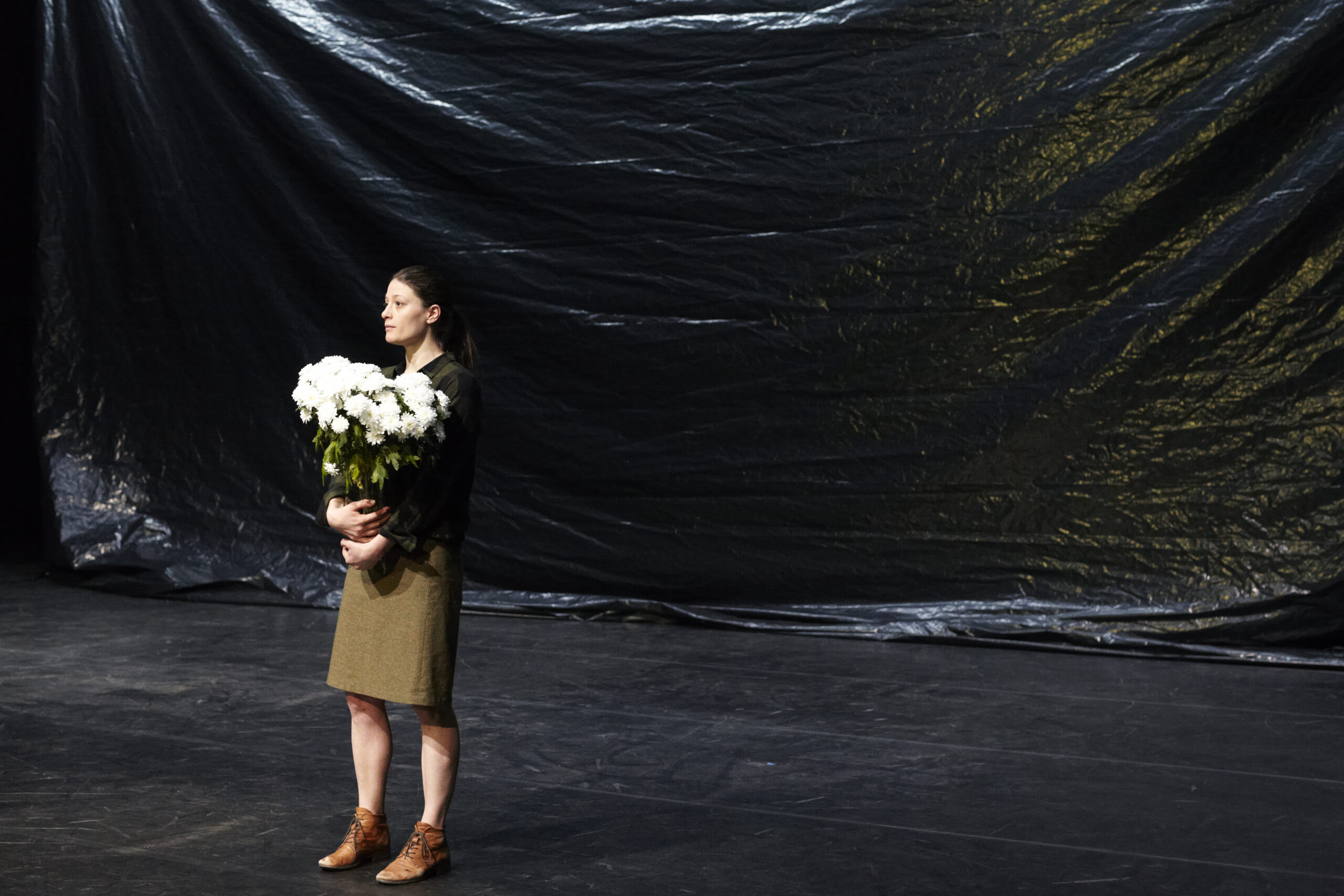 Cette pièce surprenante se rapproche de performances et d’installation in progress. Le jeu d’acteur relève de prouesses physiques, d’interactions avec des matières et avec l’espace scénique. Leurs actions relèvent autant du répertoire du drame que de la comédie.