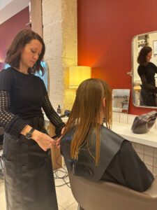 Il faut aussi parler du shampoing, un moment très agréable, avec des produits naturels et qualitatifs. Ses gestes sont précis, elle masse en profondeur pour décontracter le cuir chevelu, car sa bonne santé est la base d’une belle chevelure.